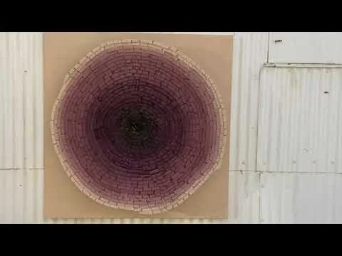reclaimed wood chips, steel rods, solid wood base, gesso and oil paint