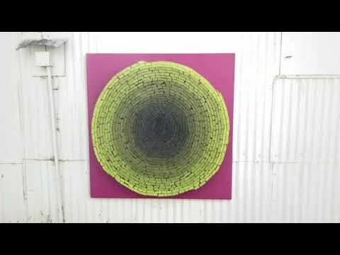 reclaimed wood chips, steel rods, solid wood base, gesso and oil paint
