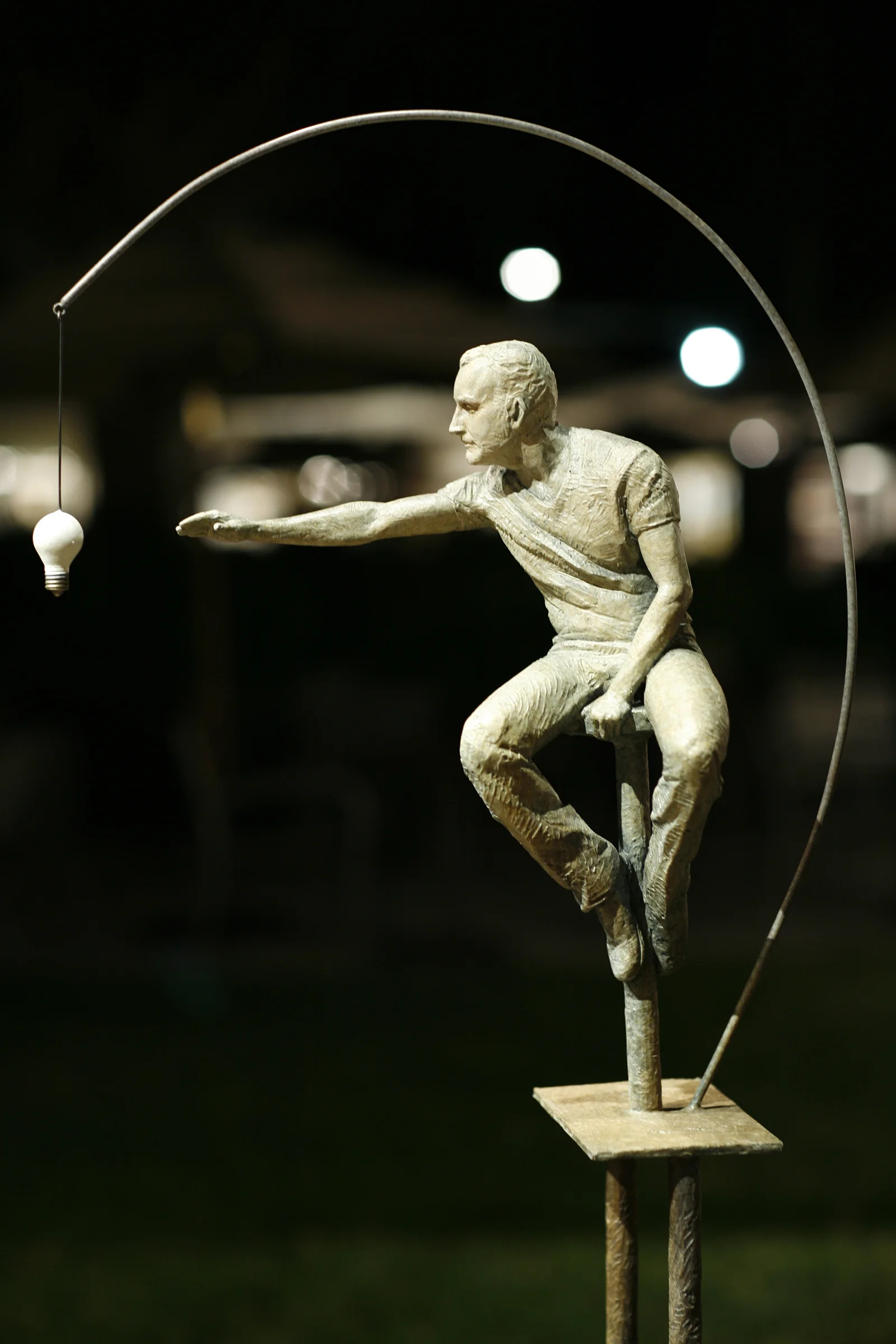 In this bronze sculpture, Andrew pays homage to the creative people of this world who are constantly chasing the light bulb of inspiration.