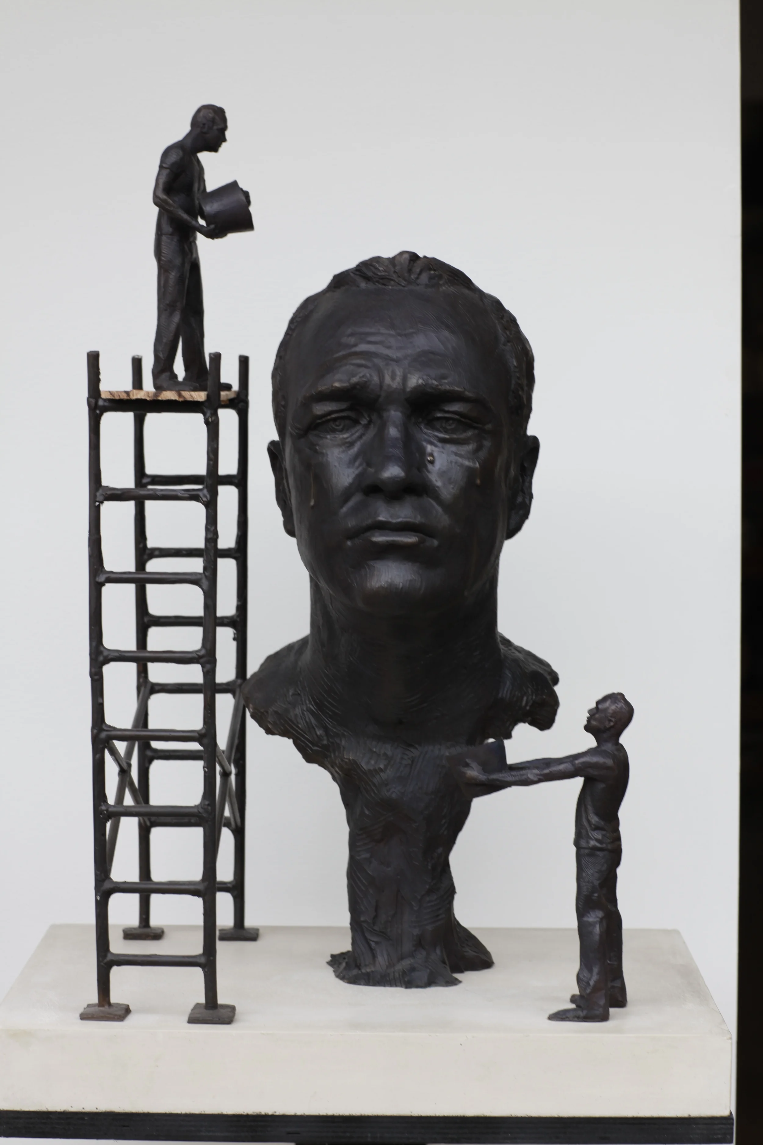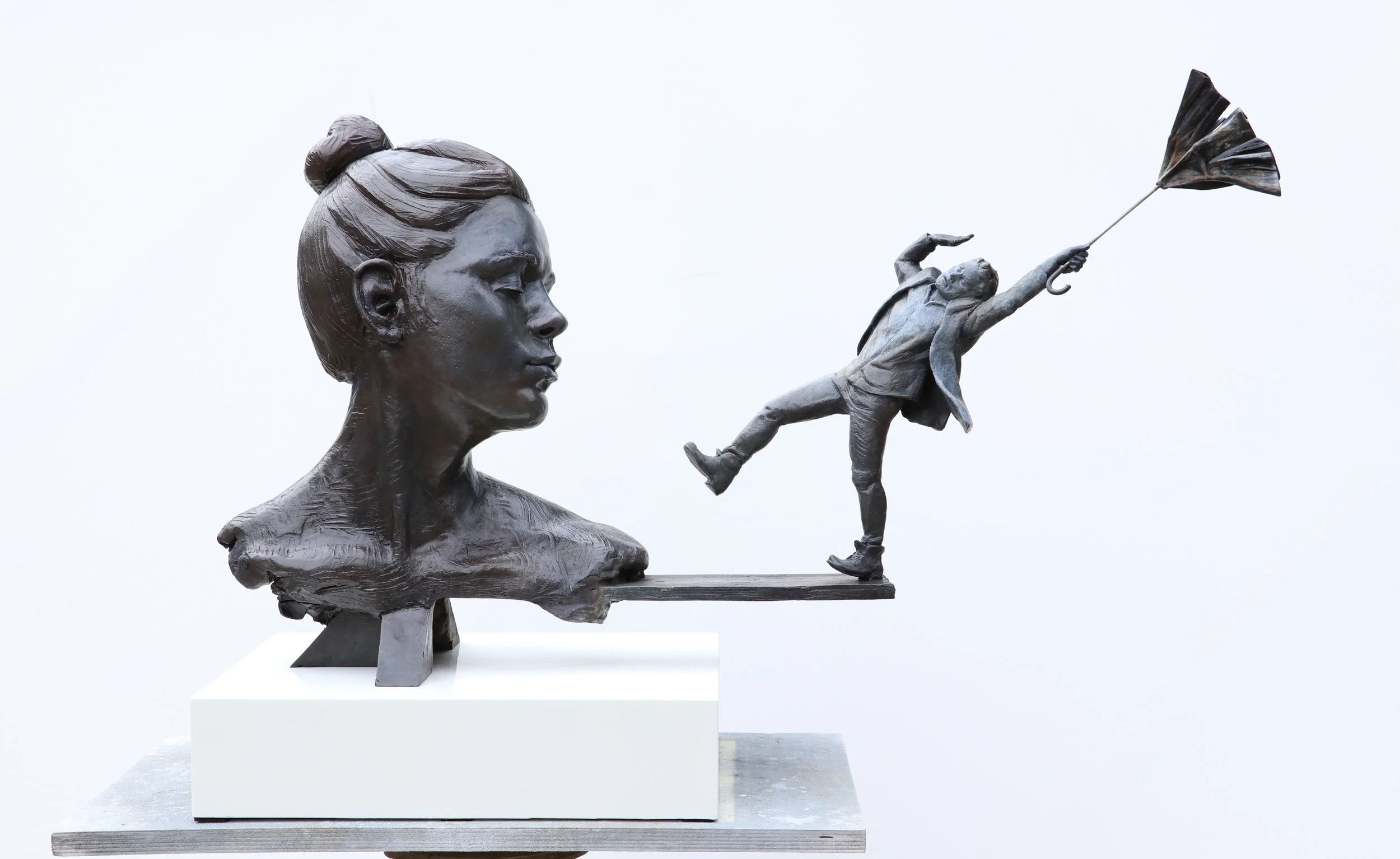 bronze sculpture, wood base with an acrylic polyurethane enamel with clear topcoat